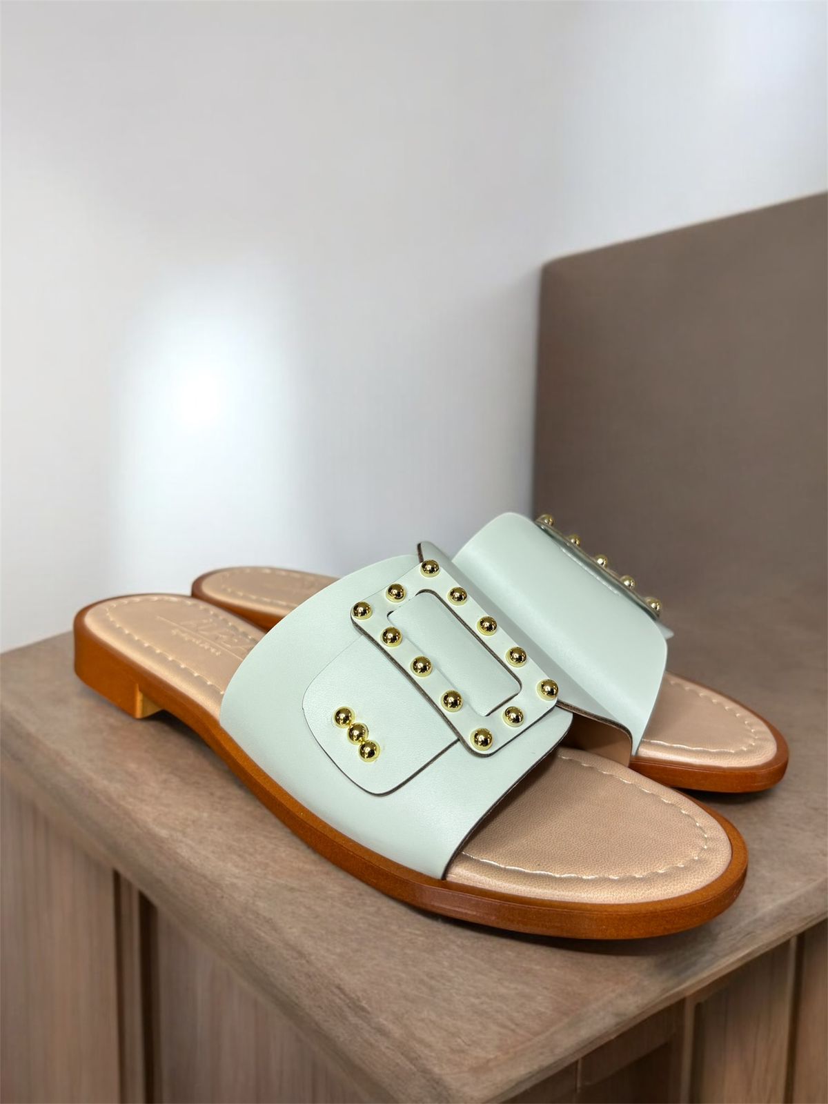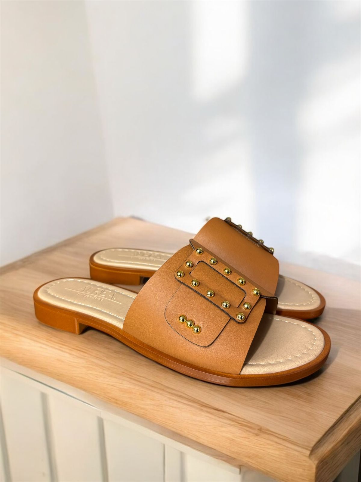 Comodidad que se nota y estilo que acompaña. Olivia es un flat con base tipo maderita, pensado para caminar con ligereza sin dejar de verse chic. Disponible en verde agua, fresco y delicado, y marrón, clásico y combinable. Un modelo versátil, ideal para el día a día, que suma naturalidad y buen gusto a cualquier look.