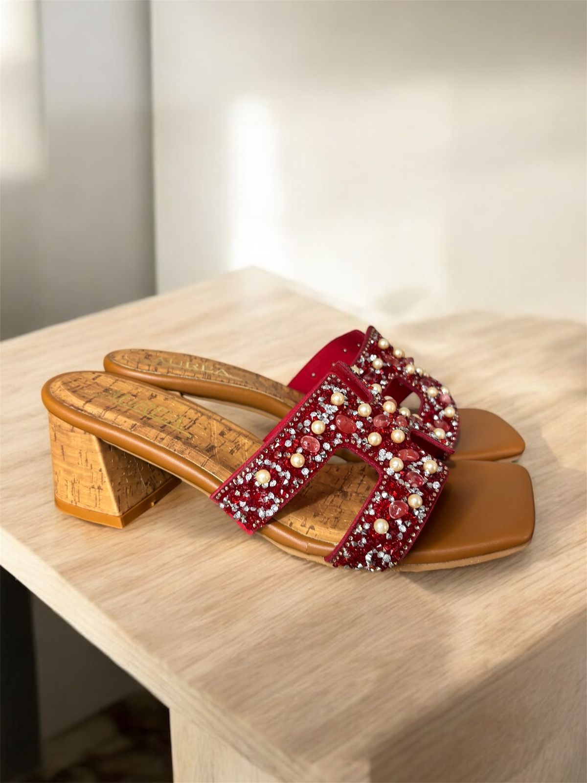 Texturas que hablan por sí solas. Detalles en pedrería y perlas que aportan carácter, combinados con un tacón cómodo para acompañarte de día o de noche. Un diseño pensado para destacar sin esfuerzo.